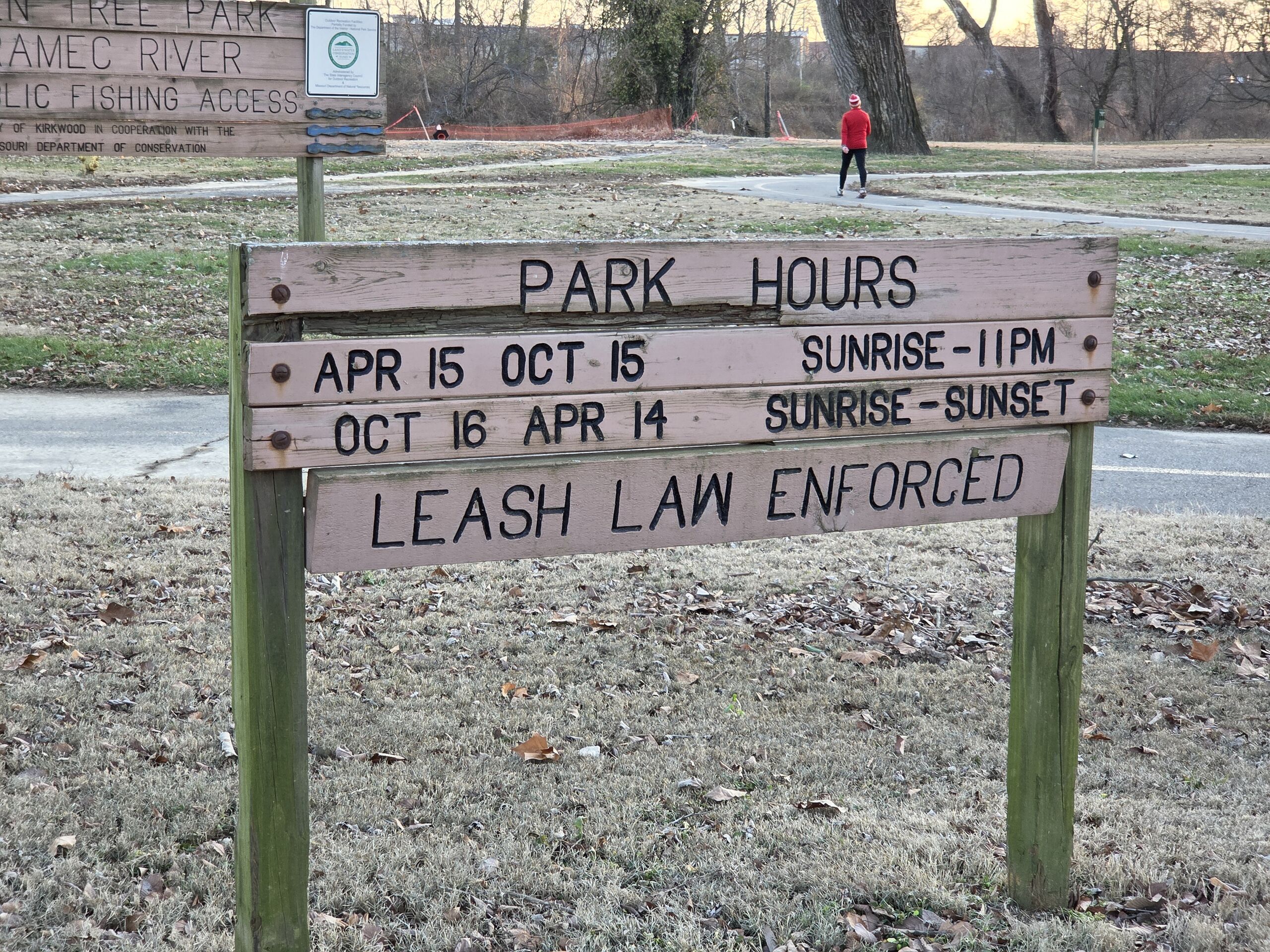 Rules and hours sign at Greentree Park in Kirkwood