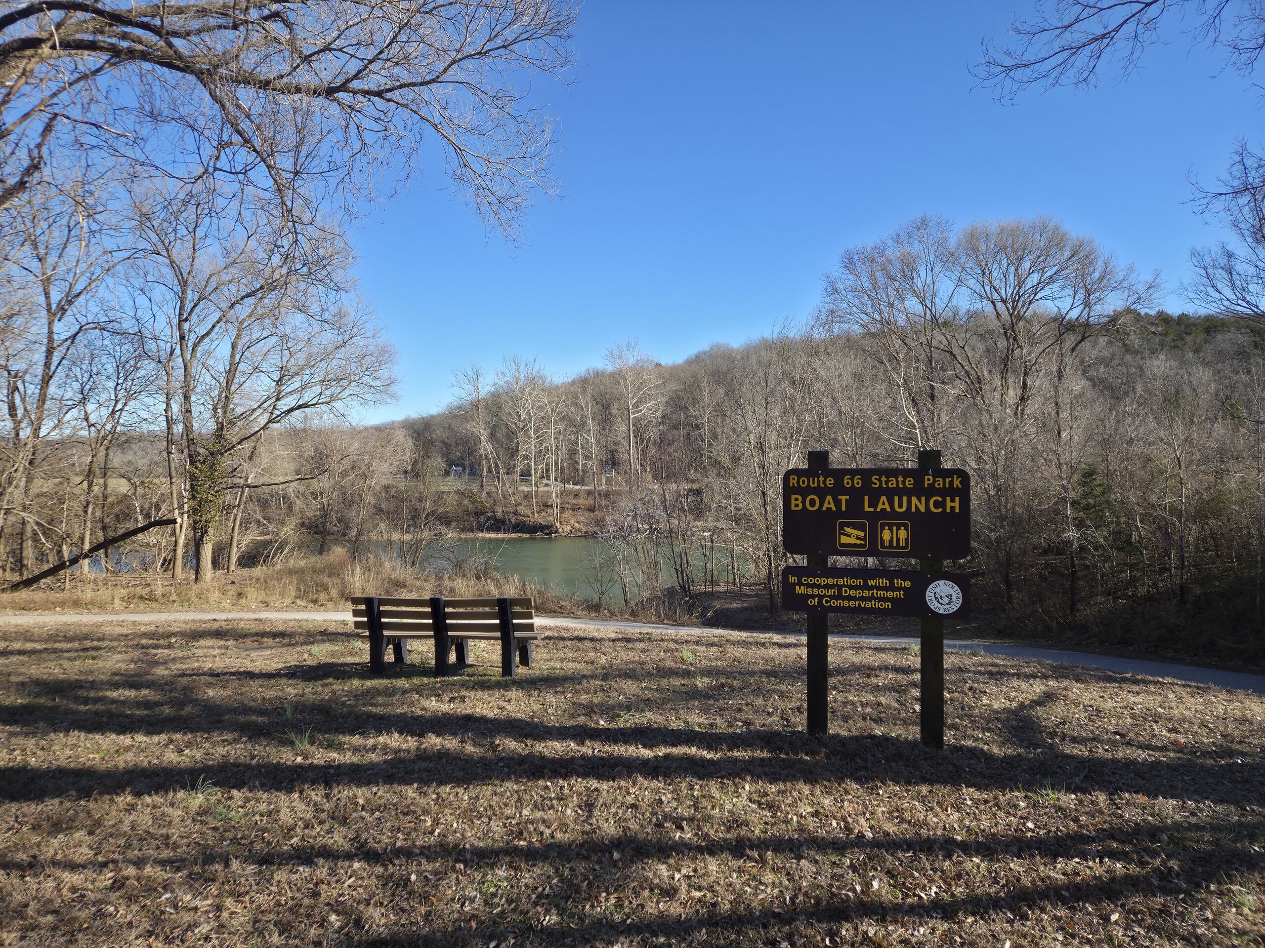 Launch sign at times beach route 66 state park in eureka.